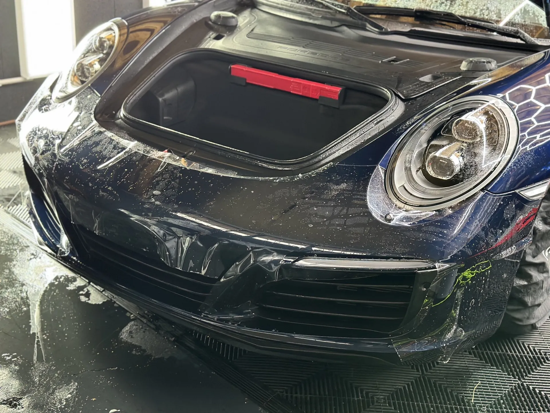 Notre client ,nous a sollicité afin de protéger le bloc avant de sa magnifique 911 suite à sa récente acquisition . Le cahier des charges était simple , une protection contre toutes les agressions mécaniques ( rayures , impacts… ) C’est pour cela que nous avons opté tout naturellement pour une protection PPF Skyfol France!