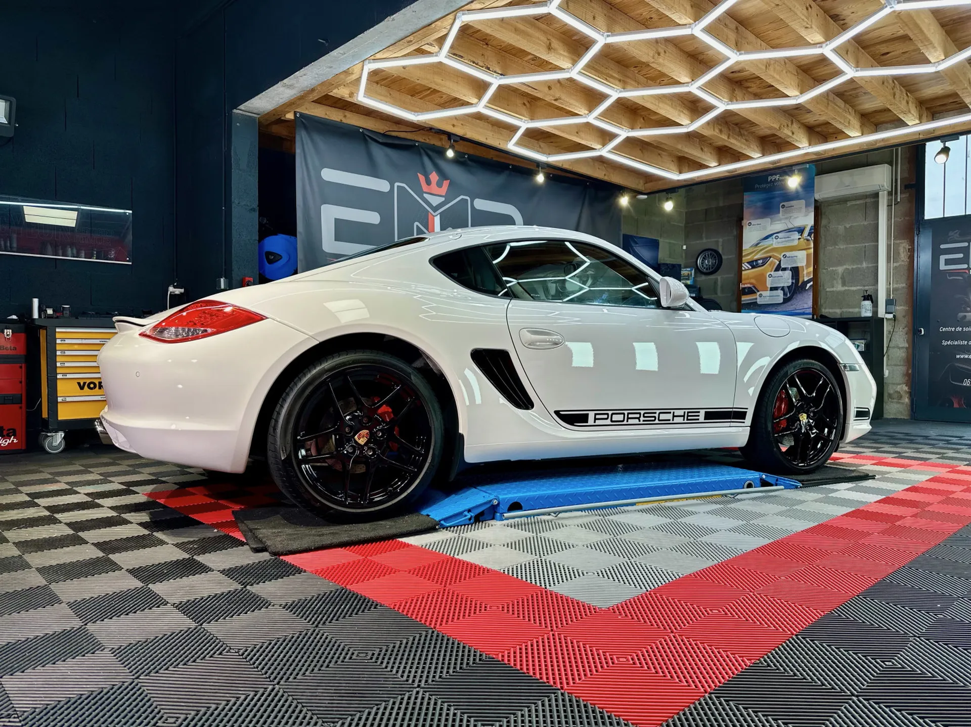 La Porsche Cayman S incarne la sportivité et l’élégance à l’état pur. Pour préserver sa beauté et sublimer ses lignes intemporelles, EMB Detailing, centre de detailing automobile haut de gamme à Vaugneray, près de Lyon, a réalisé un traitement complet de protection carrosserie.