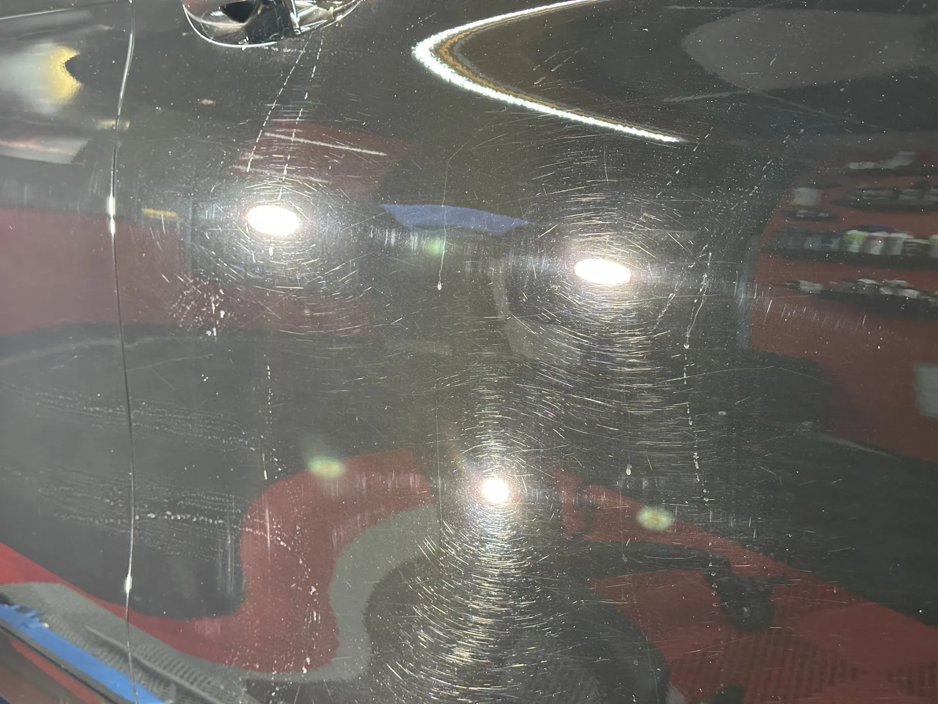 Comme toujours, j’ai démarré par une décontamination minutieuse de la carrosserie pour éliminer toutes les impuretés incrustées. Ensuite, un polissage approfondi a permis de corriger le voile terne, les micro-rayures et de redonner un éclat profond à la peinture.